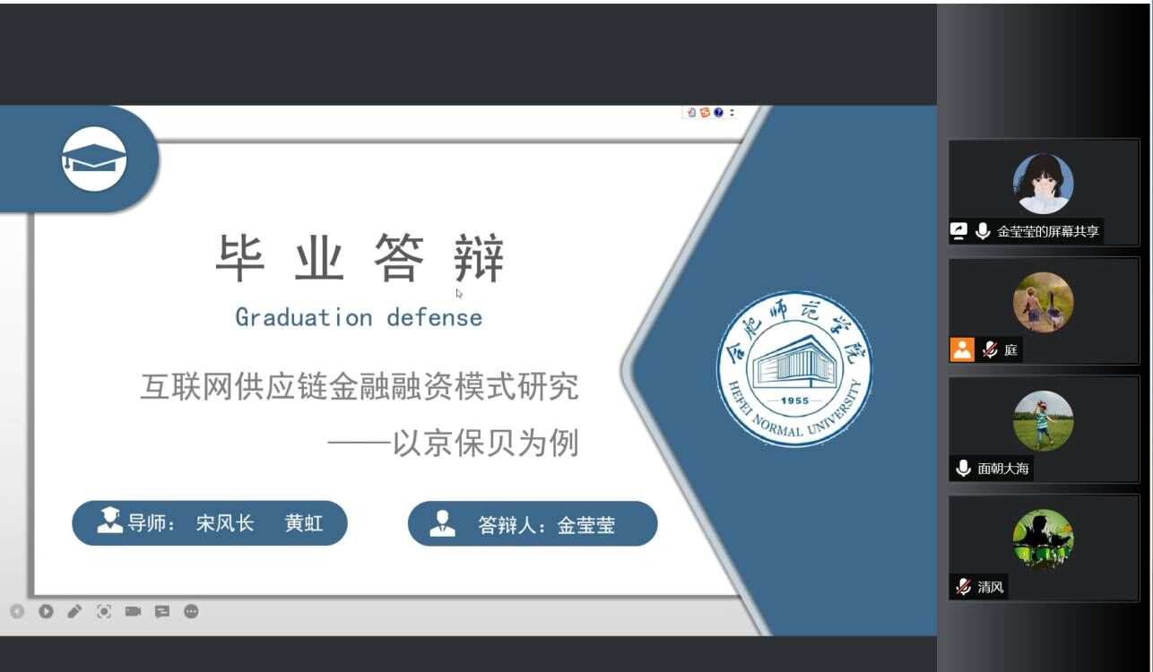 5月18日、5月21日和5月25日,BB贝博艾弗森与合肥师范公司联合培养的首届经济与金融专业(专升本)112名同学利用腾讯会议平台以线上答辩的方式进行了毕业论文预答辩(2场)和补答辩(1场)。