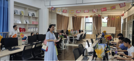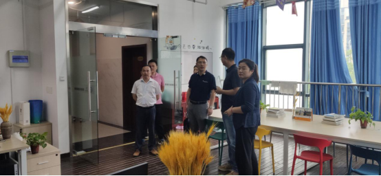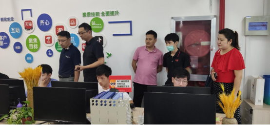 会后,陈继林陪同邵龙一行实地了解电子商务、大数据与会计等专业的实训室建设及使用情况,并参观了电商直播间、新商科双创基地,与双创班参加电商实战训练的员工进行了现场交流。
