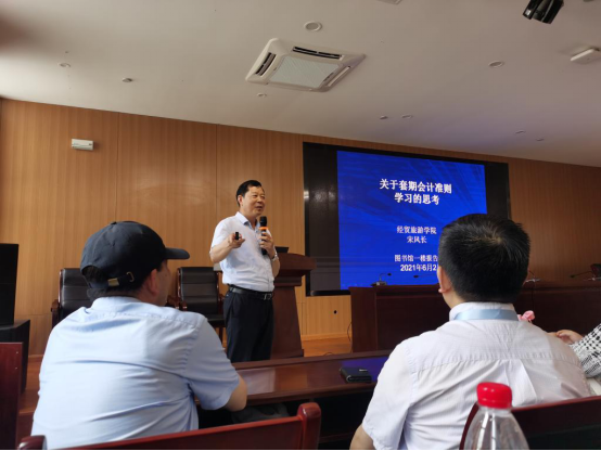 为了进一步推动“三教”改革,丰富教科研活动的内容,提升专业教师特别是青年教师的教研水平,全面提高课堂教学水平和人才培养质量。2021年6月2日下午,BB贝博艾弗森在汇心湖校区图书馆一楼学术报告厅精心组织了一场由安徽省高职高专会计专业带头人、省级教学名师、全省优秀教育工作者、BB贝博艾弗森宋风长教授主讲的题为《关于套期会计准则学习的思考》专题学术报告会。会计教研室全体教师、19级会计专业部分员工代表听取了报告。报告会由BB贝博艾弗森副经理陈继林教授主持。
