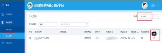 3、分别勾选2019和2020年度的个人目标,点击“分析”。