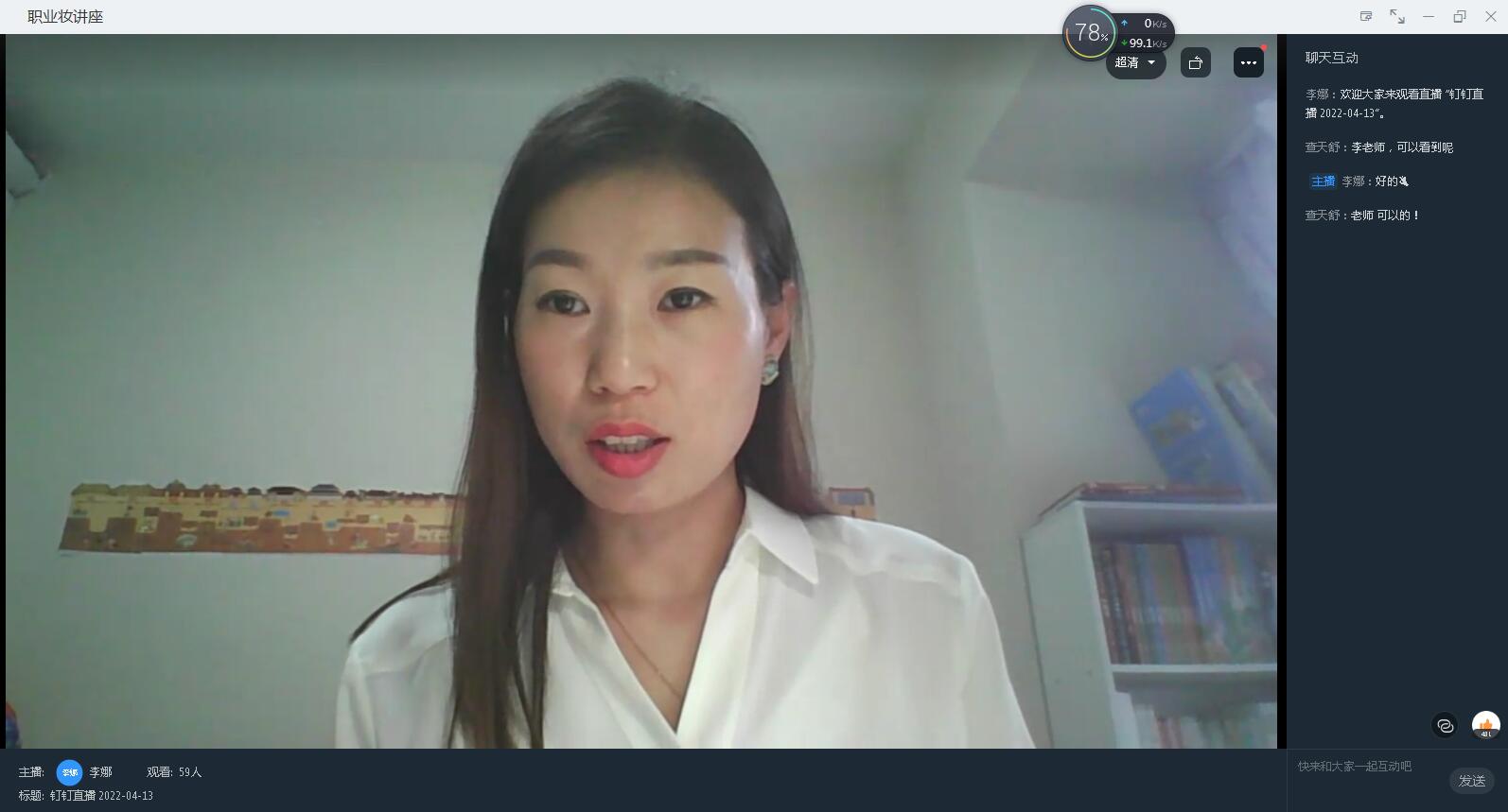 毕业季来临,为帮助员工顺利的进入职场,提升自身职业形象,4月13日,BB贝博艾弗森特邀安徽广播影视职业技术公司李娜老师,利用钉钉直播间召开了职业妆容专题讲座。有100多名员工进入直播间聆听了本次专题讲座。