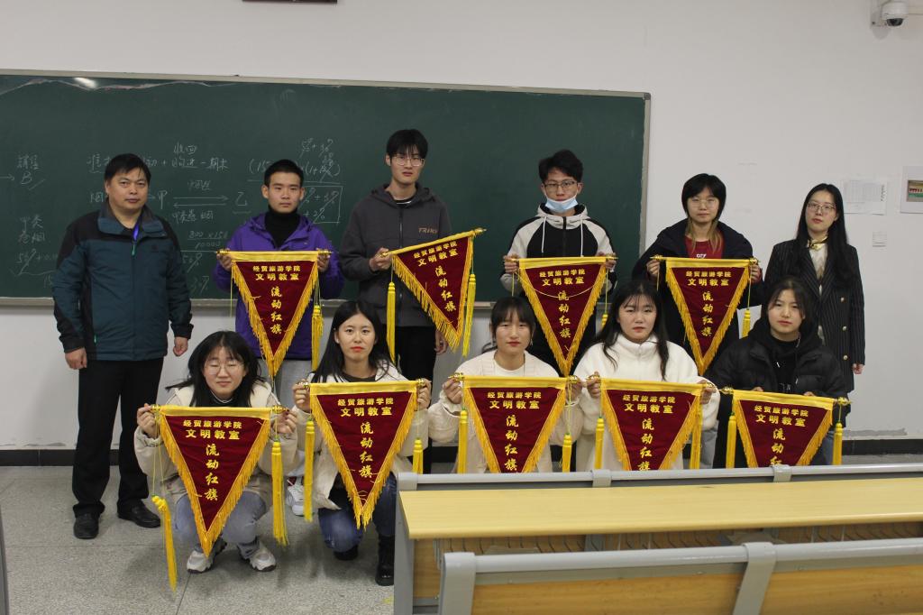 为了鼓励先进,促进校园精神文明建设,公司于11月24日,在南楼111教室举行流动红旗的颁奖仪式。获得本次流动红旗的班级有20审计班、20会计5班、20互联网金融班、20旅游管理1班、20会计6班、20会计3班、20中美合作班、20电子商务班和20会计1班等九个班级。所有20级新生班级的班长、劳动委员都参加了此次仪式。公司党总支副书记尹仕果为获得表彰的班级授予卫生流动红旗。