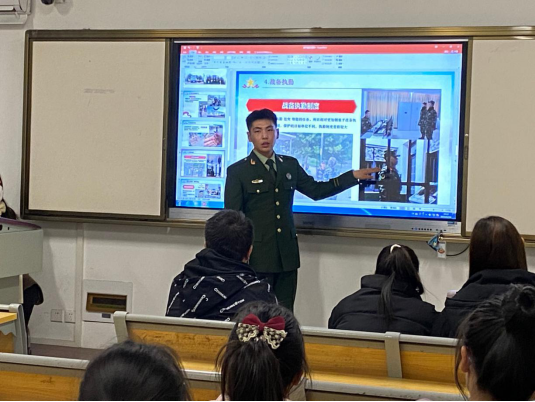 龚子彧从老员工参军的政治和体格条件、国家的征兵政策、老员工参军入伍享受的资助政策等多方面向同学们做了一一介绍,并且热心的回答了许多对入伍感兴趣的同学的问题,使同学们对多彩的部队生活有了初步的了解,对老员工参军入伍政策有了较深入的理解。