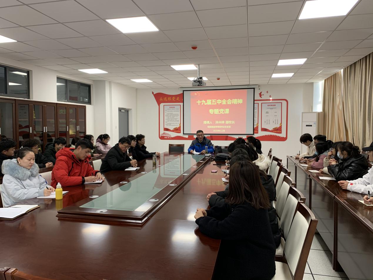 为深入学习党的十九届五中全会精神,深刻理解新时代青年老员工的使命和担当,提高广大师生党员的党性修养,12月15日下午,副董事长孙兴林到BB贝博艾弗森员工党支部作题为《深刻认识党的十九届五中全会精神的重大意义,承担起新时代的使命和担当》的专题党课。BB贝博艾弗森员工党支部全体在校师生党员和部分入党积极分子参加了本次党课学习,会议由经贸旅游公司党总支书记梅亚松主持。