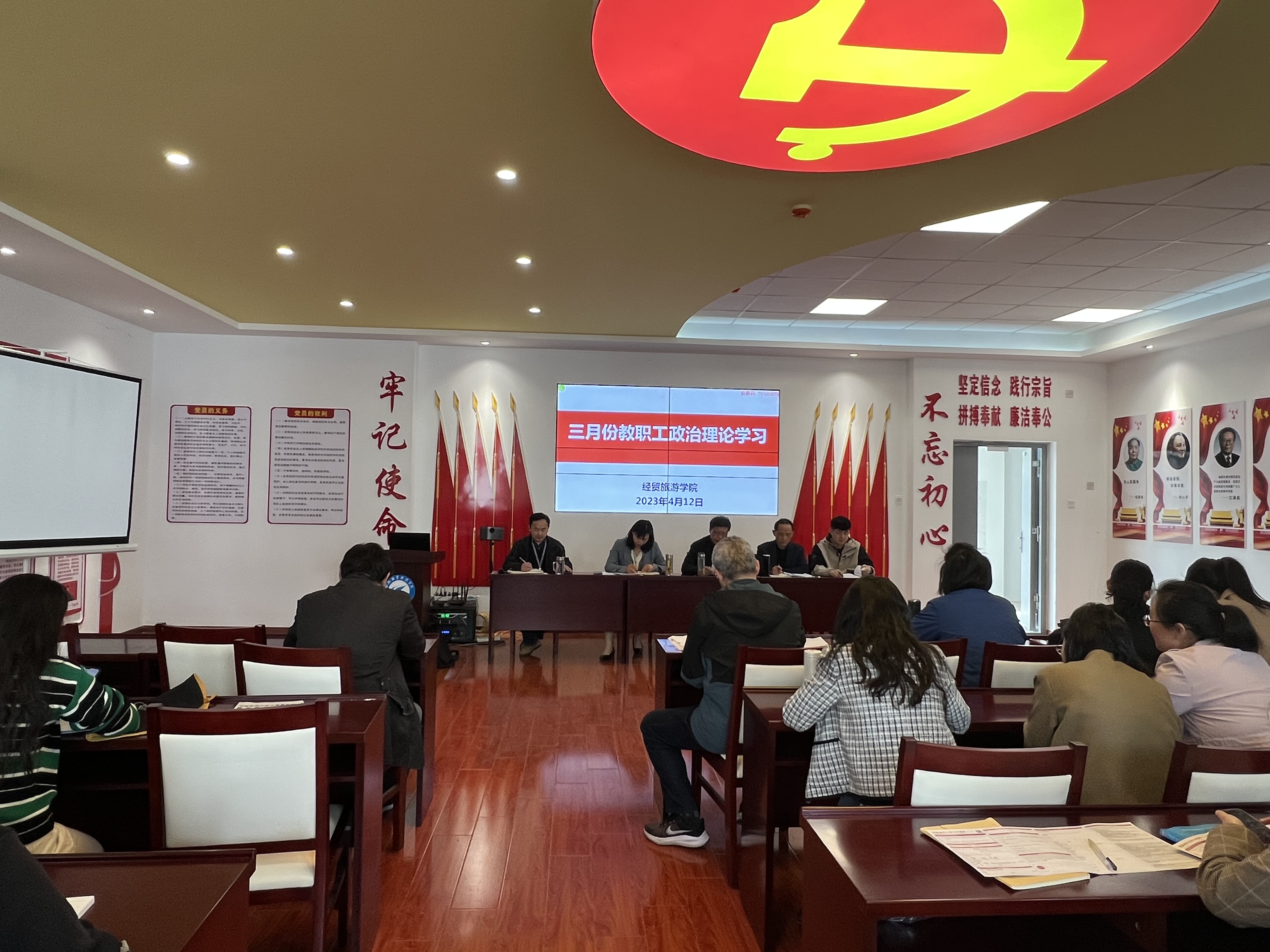 会上,经理赵红领学习近平总书记在全国两会期间的重要讲话精神;党总支委员王明明带领大家学习安徽省委书记韩俊在全省传达学习全国两会精神大会上的重要讲话内容;党总支副书记刘圣春传达合肥市教育局党委开展“强党性 严纪律 立规矩”专项活动工作方案精神;梅亚松通报近年来全全省高校腐败案例,以案示警。