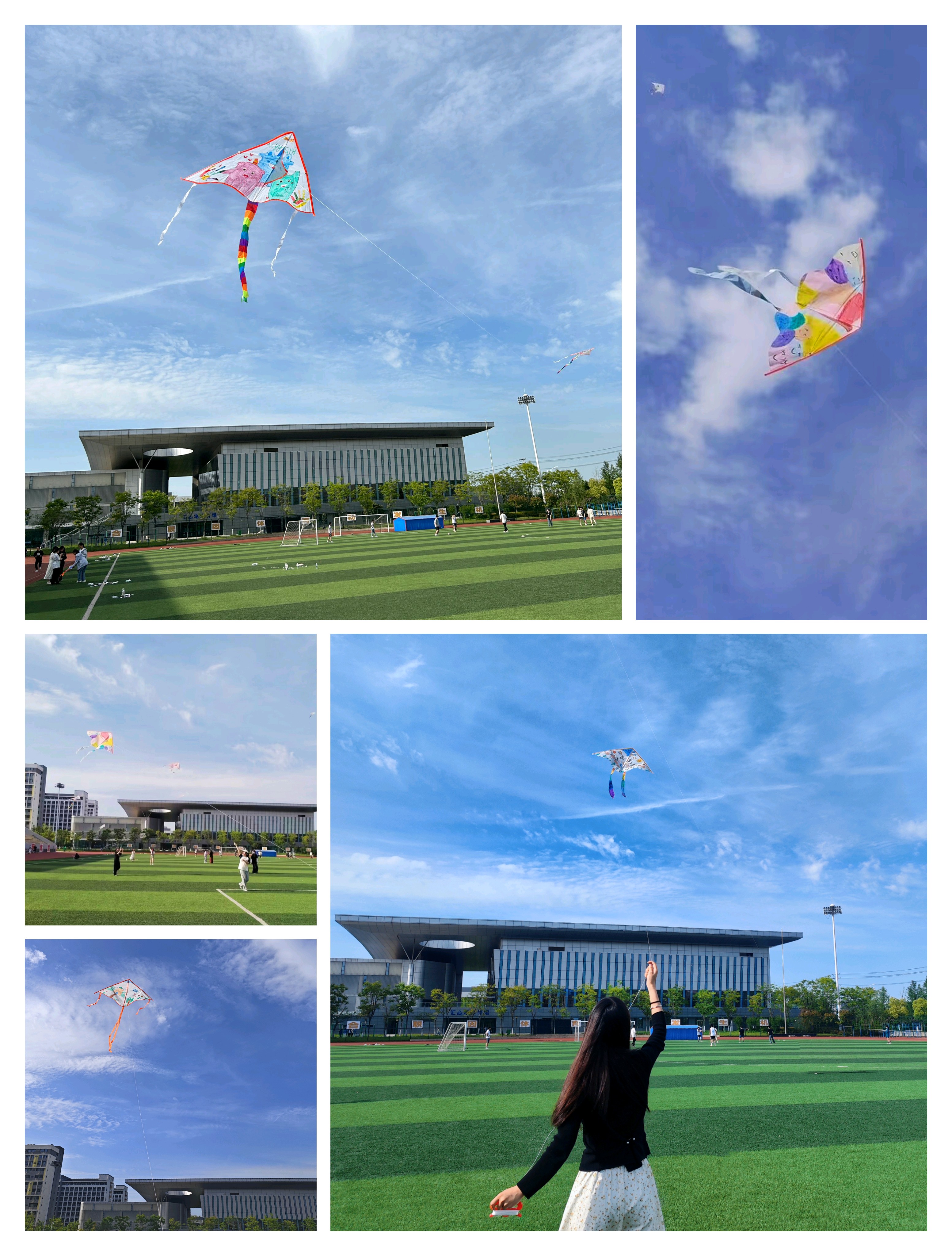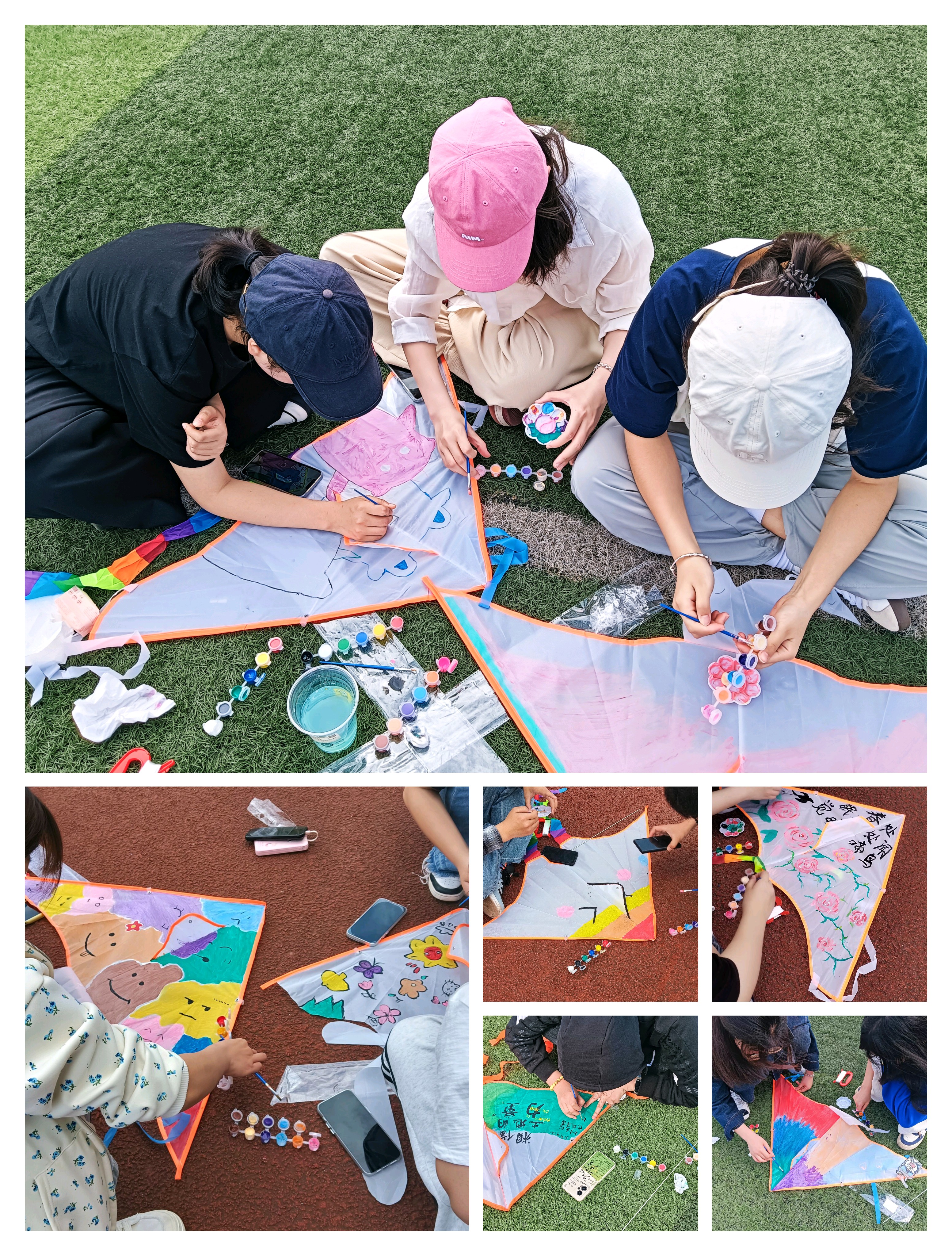 主题DIY风筝放飞活动主要有风筝手绘创作和风筝放飞两个环节,在风筝手绘创作环节中,同学们纷纷拿起画笔,蘸着五颜六色的颜料,充分发挥想象力,为风筝插上腾飞的翅膀;在风筝放飞环节,大家开心地拿着风筝在操场上奔跑着,烦恼在风筝升起的那一瞬间仿佛就烟消云散。