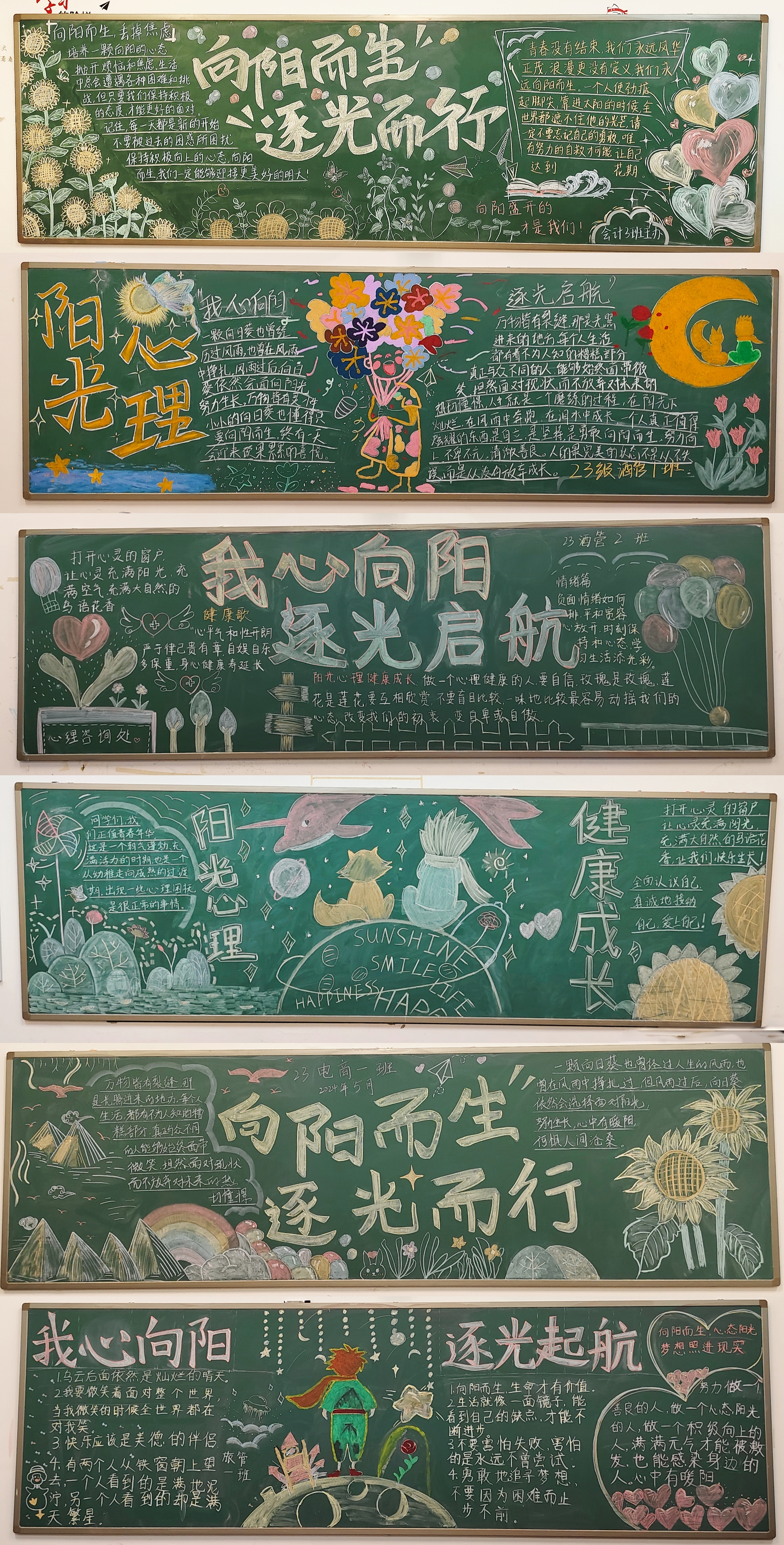 各班级围绕主题精心设计,呈现出的黑板报美观别致又富于教育意义,不仅能给教室中的师生带来积极和美好的心理感受,也能传播心理健康教育知识。