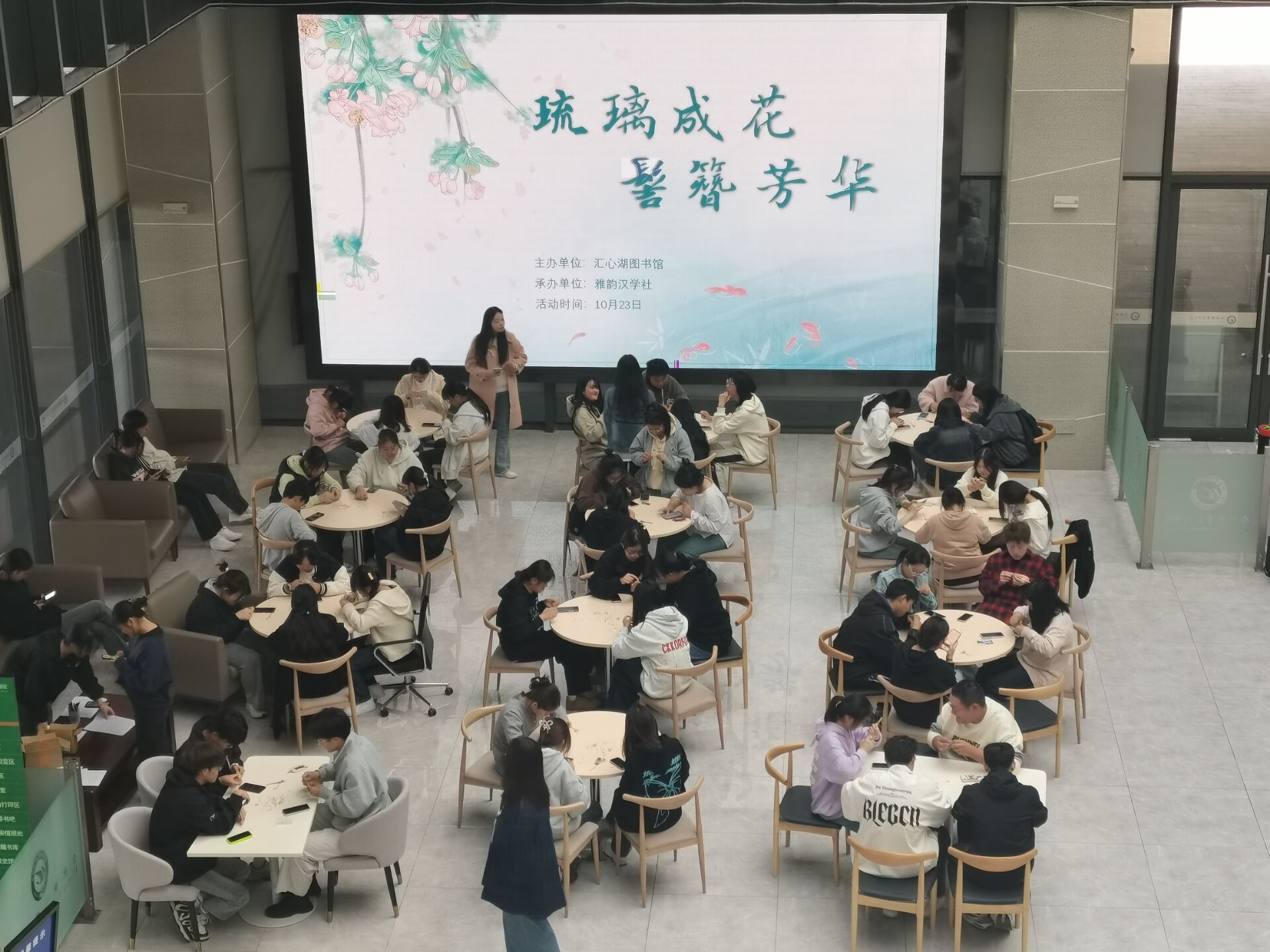 为传承和弘扬中华传统文化,丰富广大在校同学文化生活,公司BB贝博艾弗森雅韵汉学社于10月23日下午在汇心湖校区图书馆二楼举办了一场别开生面的“琉璃成花,髻簪芳华”活动。