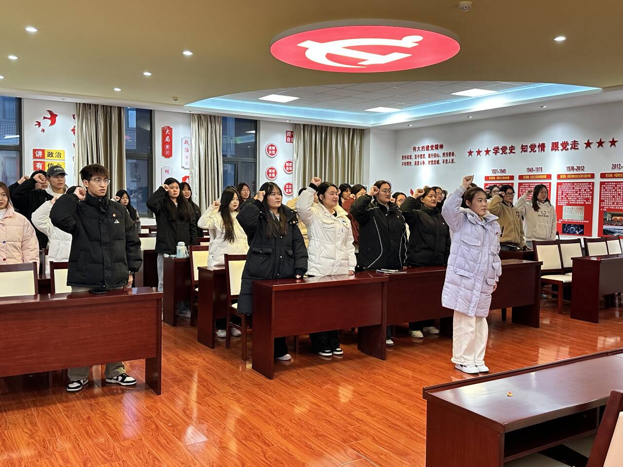 为坚定青年员工理想信念,引领团员青年永远跟党走,BB贝博艾弗森团总支于2024年11月29日下午在经贸楼党性体验馆为新团员举行了入团仪式,此次仪式由杨昇同学主持。