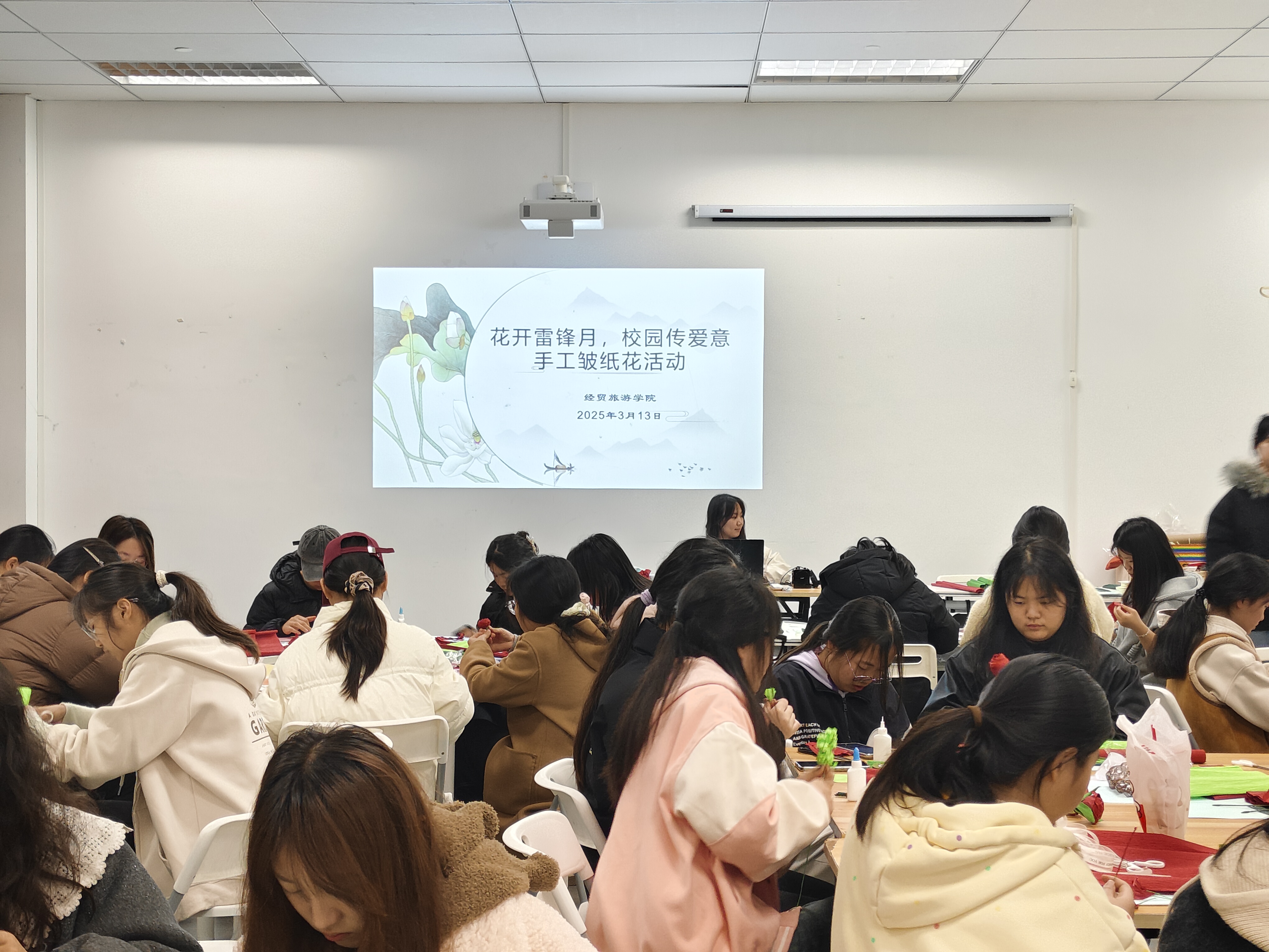 三月风暖,花开如诗,雷锋精神熠熠生辉,与春日烂漫相遇。为弘扬雷锋精神,传递爱心与温暖,3月13日,BB贝博艾弗森员工会·心理部组织开展“花开雷锋月,校园传爱意”手工皱纹纸花活动。本次活动将雷锋精神与心理健康教育相结合,吸引同学们广泛参与,大家用灵巧的双手制作出精美的皱纹纸花,也在过程中放松身心,感受温暖与关爱。