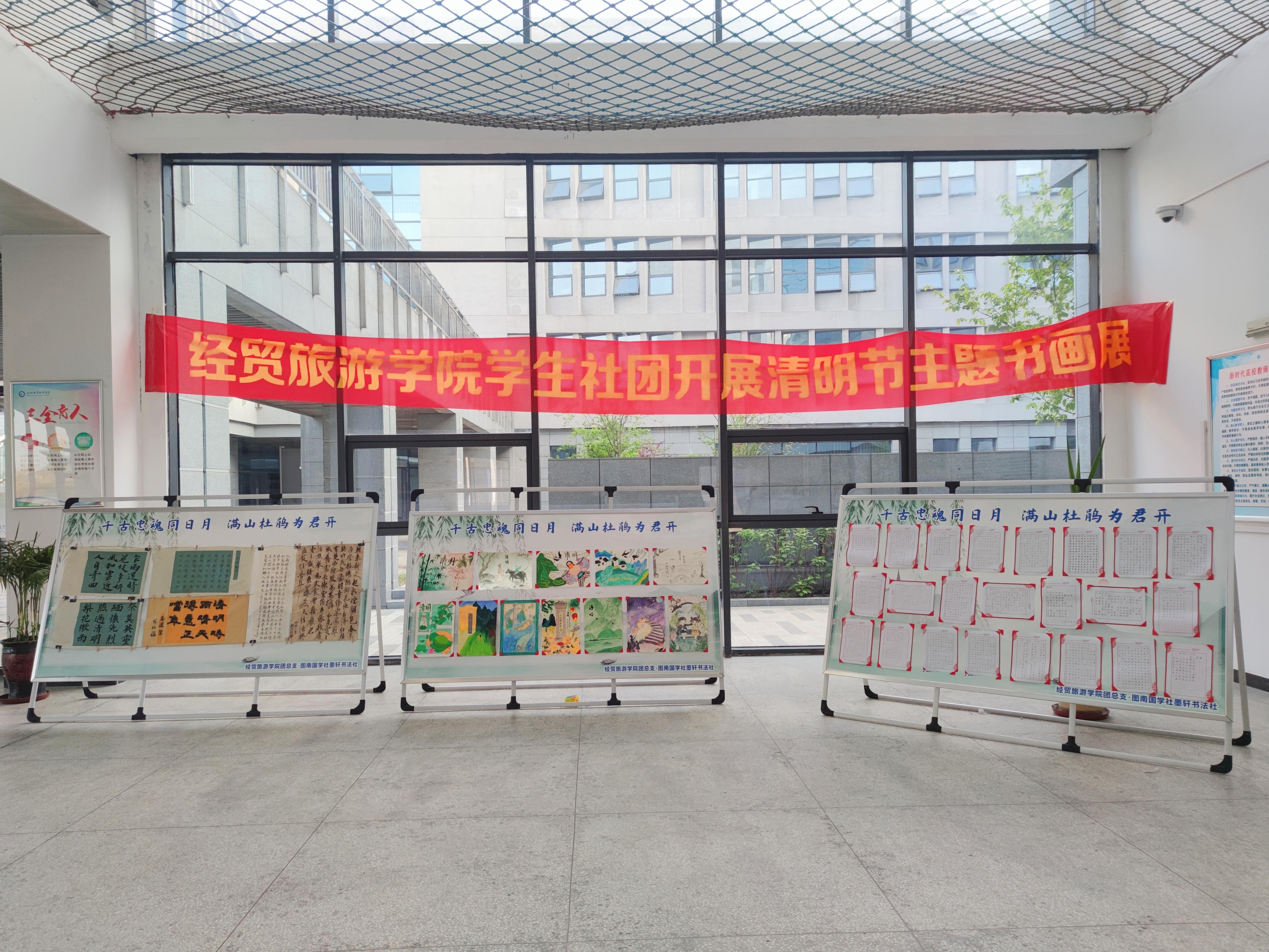 本次清明书画展设置硬笔书法、软笔书法、绘画三个组别,共计展出四十件作品,展出时间为4月5日至4月12日,展区位于教学南楼一楼。