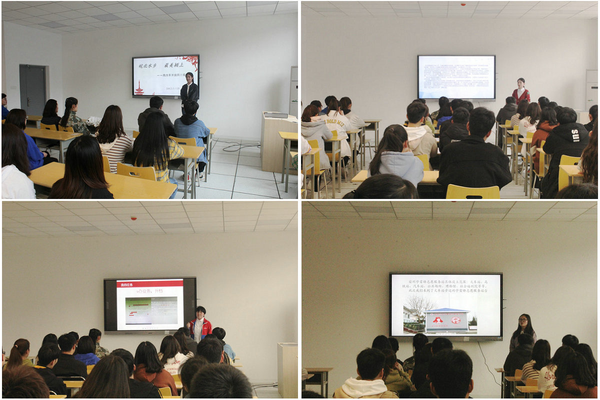 会上,社会实践分享者依次用PPT展示了自己的寒假社会实践活动,讲述了自己在实践中的经历与体会。同学们参与社会实践的方式各有不同,有志愿服务类,去敬老院看望老人,火车站旁当志愿者;有改革开放之我见,分享自己和家乡在改革开放中的成长与变化;有回访母校,探望恩师,并向学弟学妹介绍自己的大学,助力宣传公司,客串了一回公司招生志愿宣传员;有专业实践,结合自身专业提前模拟职业角色,反思自己的学业不足。丰富的内容、真挚的情感、深刻的体会,让在场的同学们深受启发,纷纷表示受益匪浅。