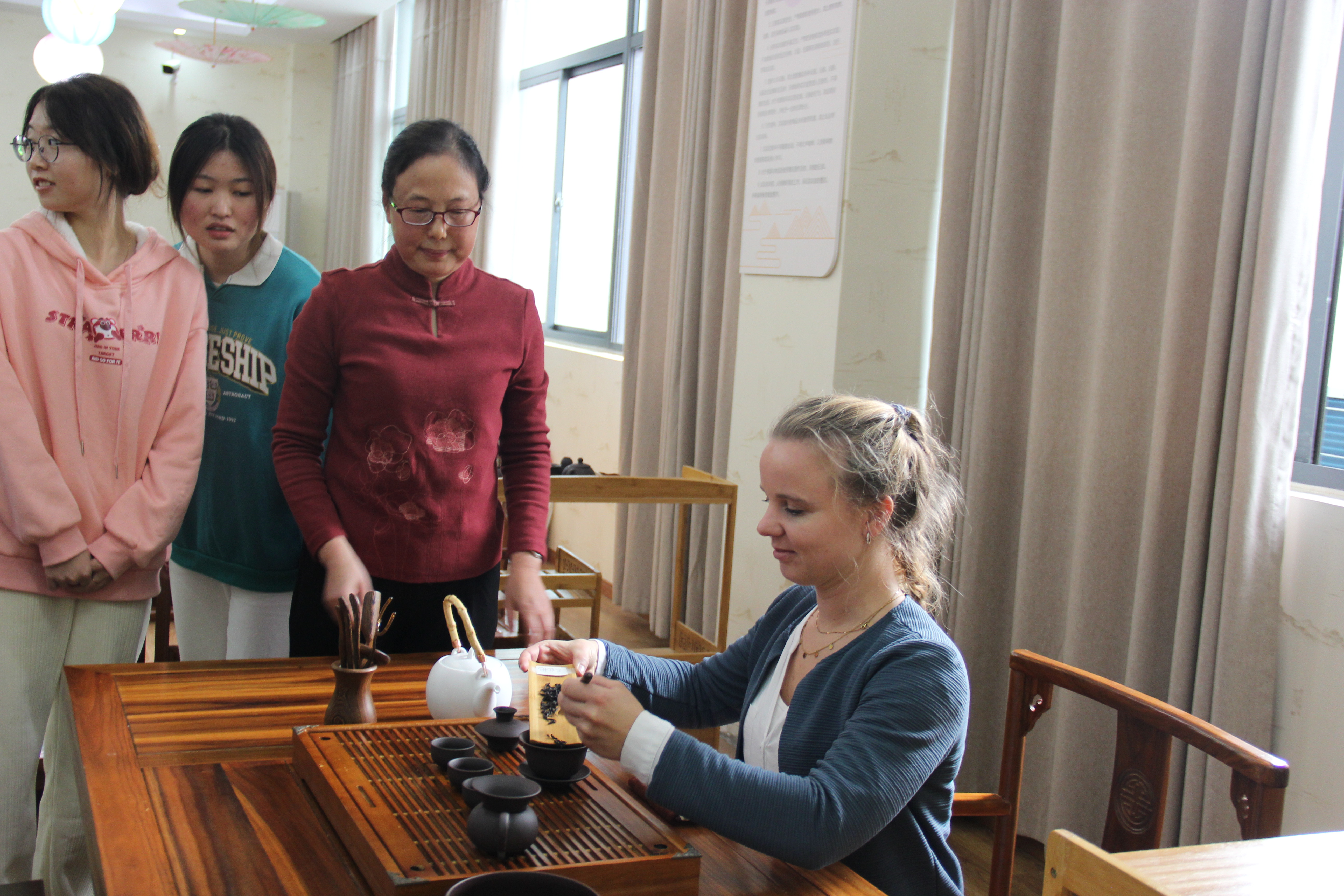 德国朋友对中国传统文化称赞有加,对中华茶艺产生了浓厚的兴趣,兴致勃勃地沉醉到茶文化的体验中。