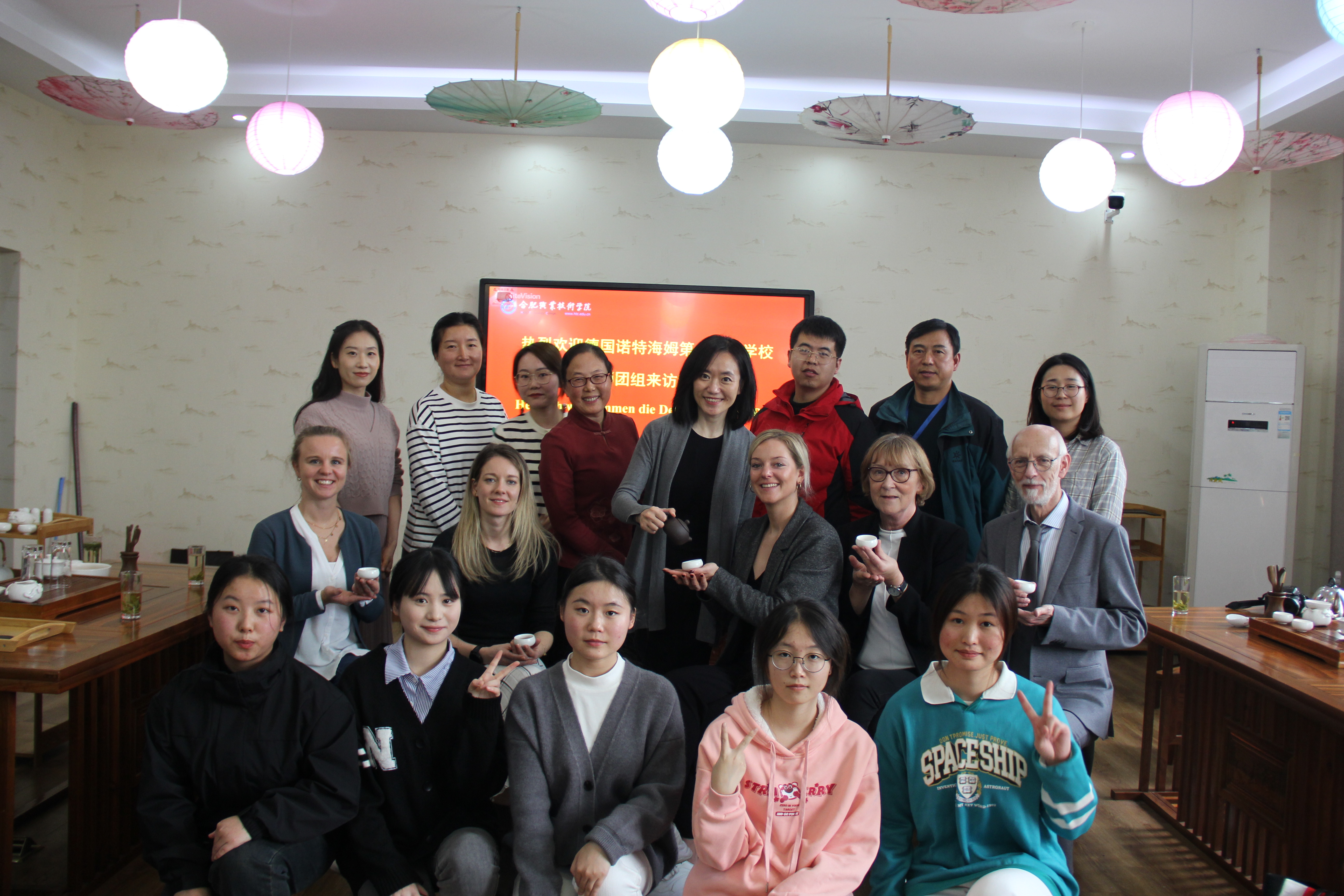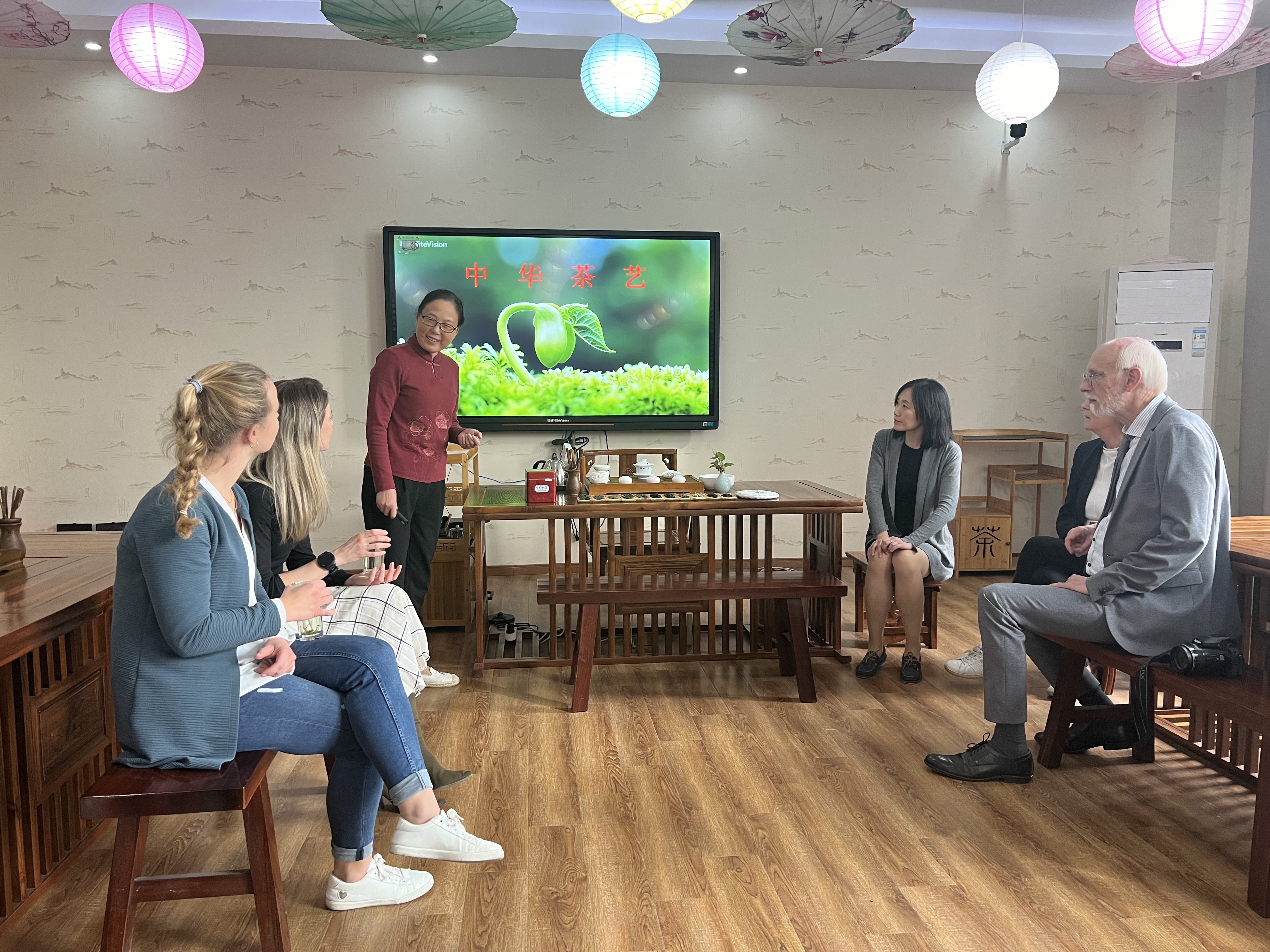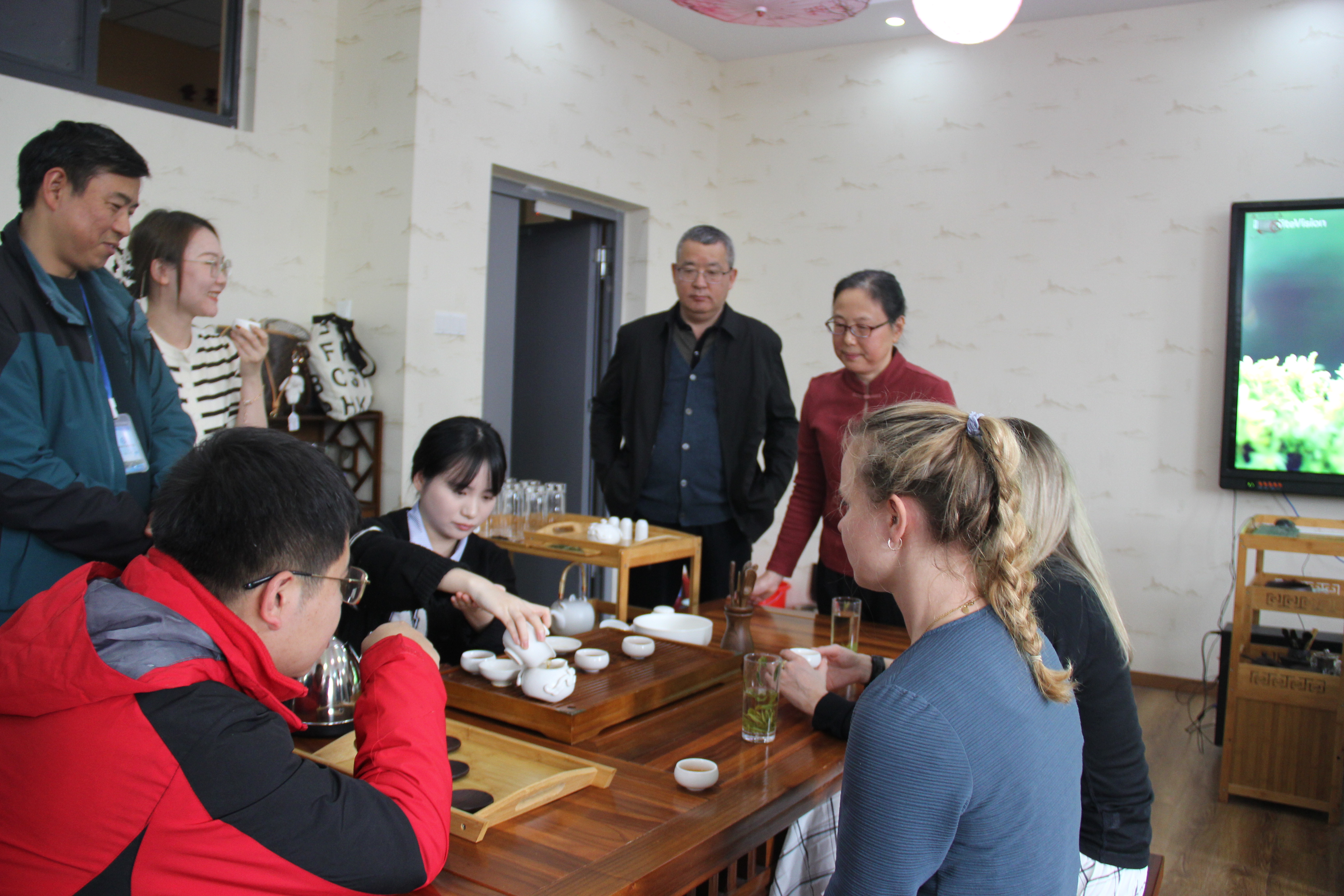 BB贝博艾弗森副教授、高级茶艺师单文娟老师和李佳佳老师为德国老师们展示了精彩的中华茶艺,介绍了中国作为茶叶故乡的悠久历史,展示了精彩的中国茶具。通过对茶具中的盖碗和公道杯的介绍,向德国友人展现了中华民族天人合一和公平公道的思想。