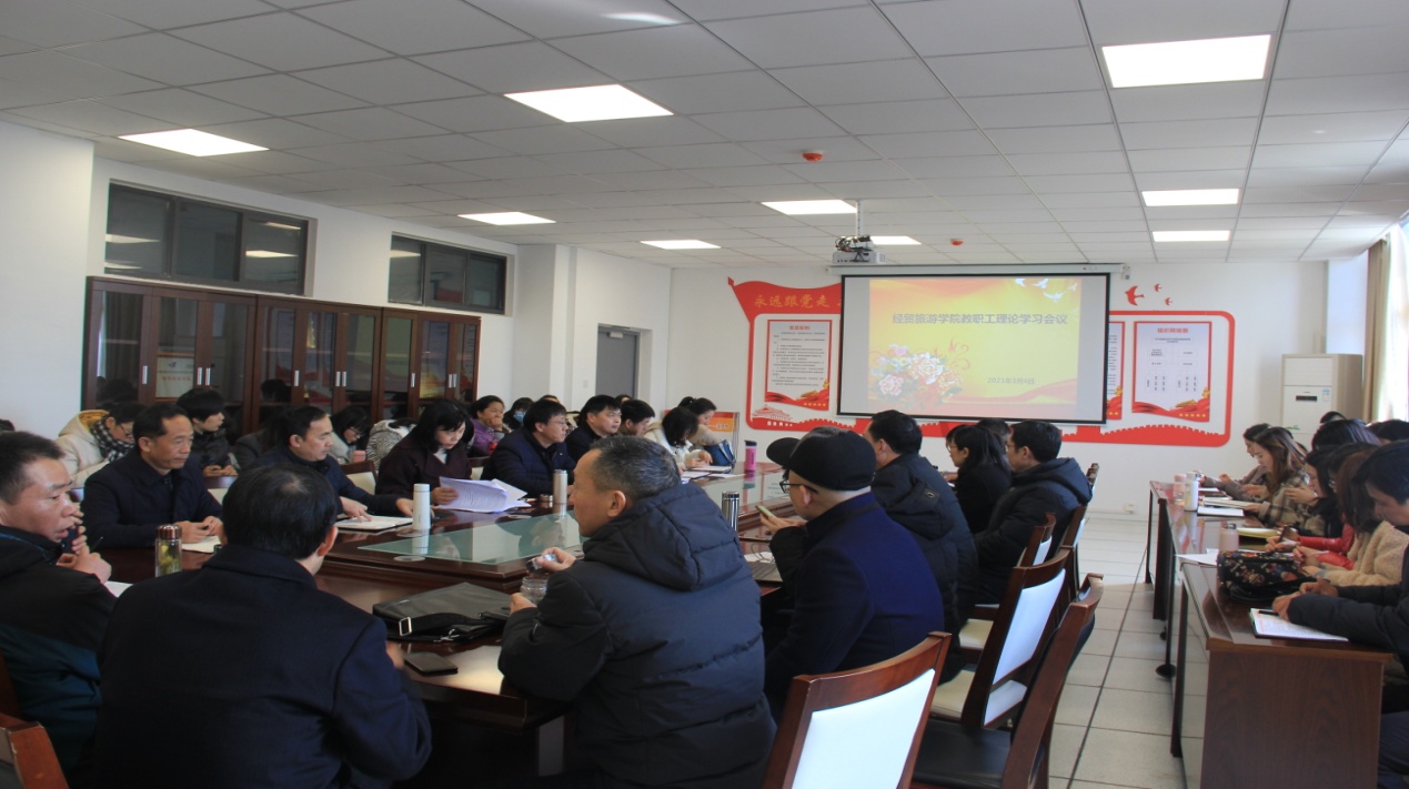 随后,赵红经理带领大家学习了《本科层次职业公司设置标准》、《本科层次职业教育专业设置管理办法》文件内容;尹仕果副书记领学了《新时代公司思想政治理论课改革创新实施方案》;教工支部书记刘圣春领学了《习近平在2021年春节团拜会上的讲话》;学管办主任王明明和与会人员共同学习了《习近平主持中央政治局第27次集体学习时讲话》精神。