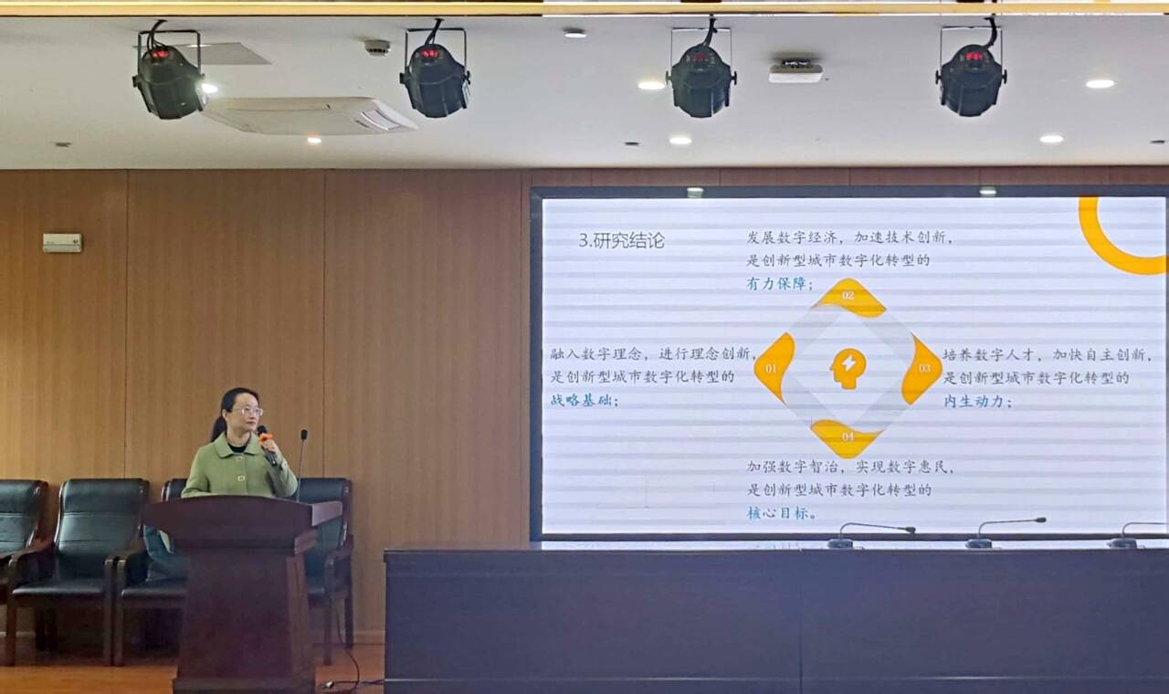 报告会分四个部分展开:首先,从创新型城市数字化转型的研究背景与现实意义;其次,基于新质生产力视角,以合肥为例研究创新型城市数字化转型内在机理;再次,以长三角城市群为例,研究创新型城市间的共生关系与数字化转型方向;最后,以合肥市为例,对创新性城市数字化转型的未来发展进行了研究展望。