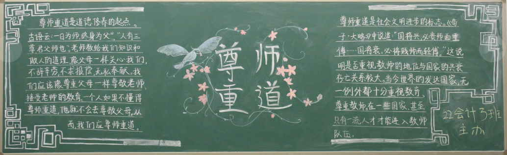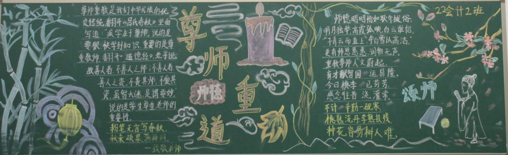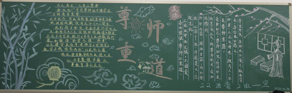 为了加强师德师风建设,增强全体教师教书育人、为人师表的责任感和使命感,积极开展师德师风宣传教育活动,努力营造良好的师德师风舆论环境和氛围。BB贝博艾弗森团总支根据公司师德师风建设工作安排,于10月中旬在22级团支部中组织开展“尊师重道”宣传教育板报评比活动。