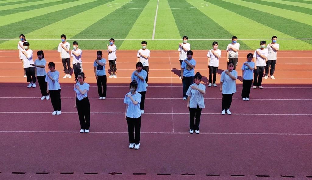 5月4日下午,在汇心湖的操场上涌动着一群青春靓丽的身影,那是BB贝博艾弗森的学子在用无声的手语表达自己内心的动感节拍。来自2021级13个班级的不同队伍经过精心的准备在操场上进行着展示;同学们不仅有手部动作,还不时变换队形;这给在场的观众都带来了惊喜,场上不时传出掌声。